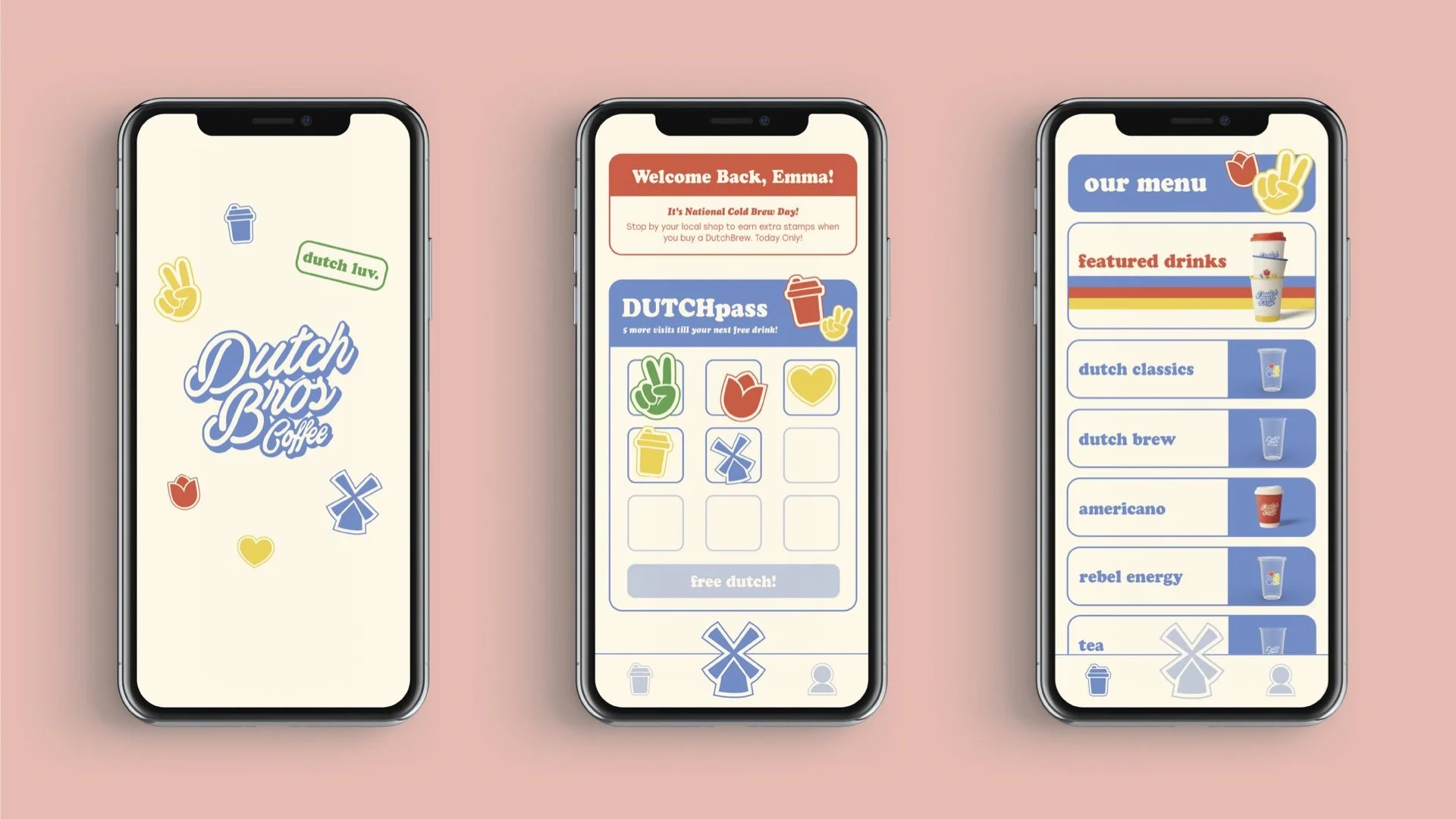 Dutch Bros is a beloved coffee chain on the west coast that is known for its friendly “broistas” and ‘killer’ coffee. This brand refresh aims to bring Dutch Bros back to its roots: personable, friendly, but still cool. It brings back the retro feel the brand encapsulated when founded through the bright primary color palette and funky illustration style. The rebrand also brings a newly designed app to bring Dutch Bros into the digital age, transforming their staple ‘punch card’ rewards into an in-app function for users to enjoy. Lastly, a refresh of the hot and cold cups brings the brand back to its retro roots. As always, Peace, Love, Dutch.